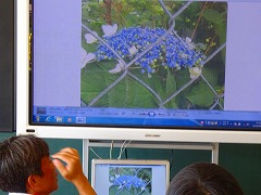 ↑ 1年生が見つけた学校横のアジサイです。アジサイも、いろいろあります。