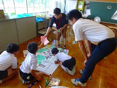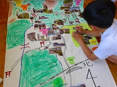 ↑ 3年社会 校区の様子を、絵地図にまとめています。土地の使われ方がはっきりしてきました。