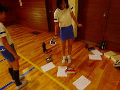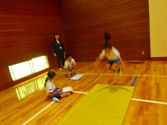 ↑ 新体力テスト実施、立ち幅跳びです。弾みをつけて、思いっきり前に跳びました。