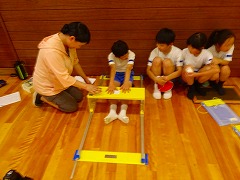 ↑ 握力調査です。鉄棒やうんていをすると握力も鍛えられます。