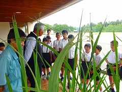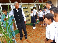 ↓ 津幡まこも生産組合長の森山さんとJA石川かほくの皆様のご協力により、本日は5,6年生が総合的な学習でまこもについて学ぶことができました。