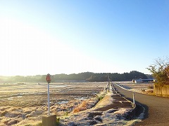 ↑今朝は、草木の息吹で真っ白に霜が降り、その霜に朝日が当たり一面ダイヤモンドの輝きの里となっています。