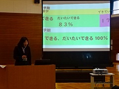 2学期までの児童の授業アンケート「できたかなカード」の集計を紹介しました。「自分の考えを書いている」「ならった漢字を使って文章を書いている」は1学期末の7月は、それぞれ91%、83%の笠野っ子ができていると回答していましたが、2学期末の12月には、なんと100%の笠野っ子が「できている」と回答しました。素晴らしいことです。引き続き、3学期もがんばりましょう。