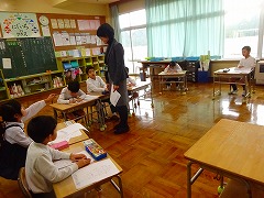 ↑ 感謝の気持ちを伝えようと、3・4年生が相談しています。それぞれが自分の考えを出して、それに関する思いを伝え、対話が成立していました。