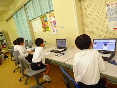 ↑ ローマ字打ちを担任と交互に行っています。実際に言葉を入力しながら、ローマ字の仕組みを理解しています。