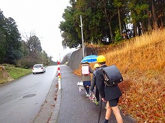 ↓ 朝霧の中、子供たちは登校してきました。うっすらとした中から、徐々に近づいてきます。