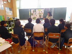 ↑こちらは、6年生の家庭科です。お家の人に感謝の気持ちを伝える献立を話し合っていました。栄養バランスも考えて、喜んでもらえるメニューを考えていました。