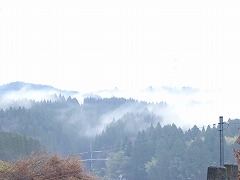 ↑ 笠野の里も朝霧が立ち込めました。雲の中にいるようで、みずみずしさを満喫できました。このすばらしい景色、美しい朝です。