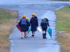 ↑雨の音を楽しみながら歩いていることでしょう。元気に登校してきました。しかし、今日はインフルエンザでの欠席が増え、今日予定していました「避難所開設時の声掛けボランティア」訓練は、2月下旬に延期いたしました。ご準備されていた方々、申し訳ありませんでした。次回、ご都合がよろしければご参加をどうぞよろしくお願いいたします。