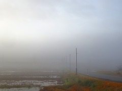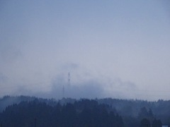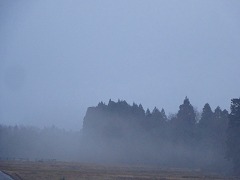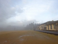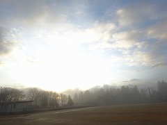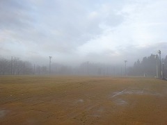 ↑今朝の笠野小学校です。濃い朝霧に包まれています。