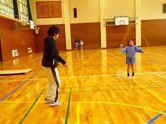 ↑ 1.2年生体育 新しい縄跳びの技にチャレンジしています。