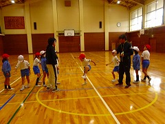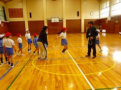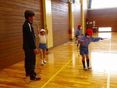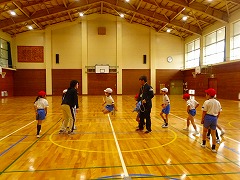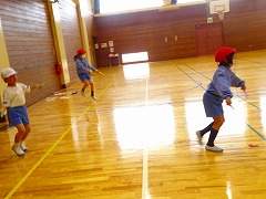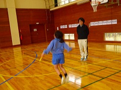 ↑ 1,2年生体育 8の字跳びをリズミカルに跳んでいます。みんなで大きな声で数えて、大いに盛り上がっていました。