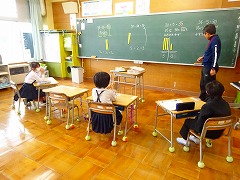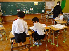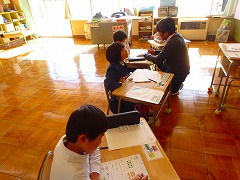 ↑ 1年算数 大きな数の計算の仕上げをしました。できた人から、先生に見てもらい、どんどん進めていきました。