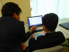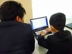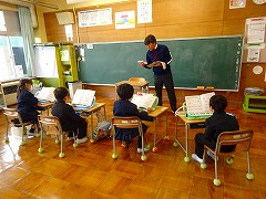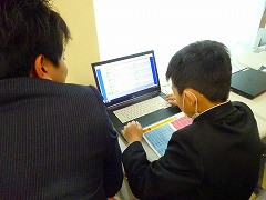 ↑ ローマ字打ちを担任と交互に行っています。実際に言葉を入力しながら、ローマ字の仕組みを理解しています。