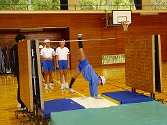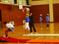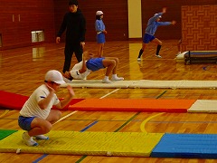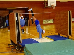 ↑5,6年生のマット運動です。自分の課題を意識して練習に取り組み、それぞれの技に磨きをかけています。