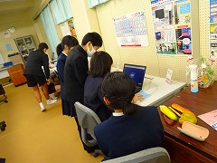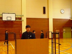 ↑ 明日の英語スピーチコンテストのスピーチやプレゼンテーションリハーサルをみんなの前でしました。また、下校時には職員室で先生方にも聞いてもらい、激励をうけました。