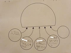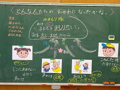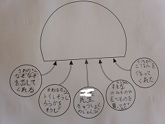 ↑ 2年道徳 どんな人のお世話になっているかな 感謝する気持ちについて話し合いました。「クラゲチャート」を用いて、自分の思いを語るアイテムとしました。いろんな人にお世話になっていると感じています。その理由を語ることで、感謝の思いを共有することができました。