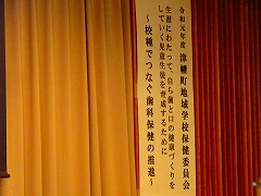 ↑ 午後は津幡町の学校保健委員会がありました。津幡町の実践報告は、本校の養護教諭が代表で行いました。右前で発表をしているのが本校の養護教諭です。PTAの家庭教育部会からのご参加もありがとうございました。大人が歯を磨く姿を子供に見せていくことで、意識が高まるということが心に残りました。本校では、給食後、先生も子供も一緒になって歯磨きタイムを実践しています。小規模校ならではの実践だと思いますので、継続して進めていきたいと思います。