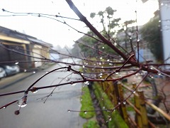 ↑ 写真ではよくわかりませんが、子供たちが待ち焦がれていた雪が降りました。でも、「積もらないねえ」と子供たちは残念そうです。一番右の写真は雪ではなくて薄桃色の美しいキャメリア(椿)です。