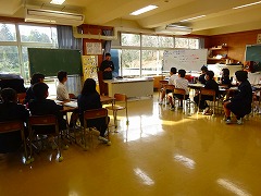 ↑ 5,6年生の英語です。5年生は、My hero 6年は、My dream それぞれ、自分の思いを英語で話しました。
