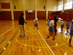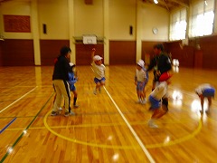 ↑ シュート対決をしたり、バスケットボールでドリブル鬼ごっこをしたりしました。