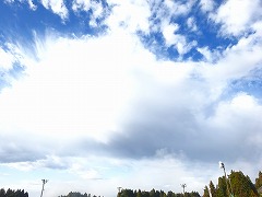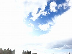 ↑ 朝は霧が立ち込めていましたが、10時ごろには、青空になりました。そして、久しぶりに大きな「くじらぐも」がやってきました。↓