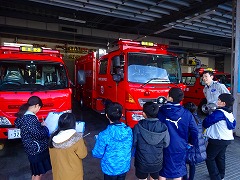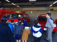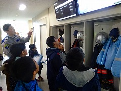 ↑ 初めて見る消防署には、たくさんの発見がありました。見学途中、実際に救急車の要請が入り、緊張感が走る場面もありました。笠野小学校の卒業生が凛々しく働いている姿にあこがれを感じました。地域を守る仕事について、今日の見学を生かしてさらに学びを深めていきたいと思います。お仕事中にもかかわらず、丁寧に説明をしていただき、ありがとうございました。
