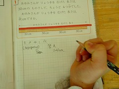 ↑ 2年算数 2年生は、30cmの4つ分の長さを考えました。1mは、生活の中でもよくつかわれている長さで、cmとmの仕組を理解しました。