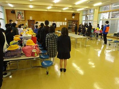 例年より長い2学期も今日が終業式となりました。朝からとても心地よい和歌を詠む声が聞こえてきたので、教室をのぞくと6年生が百人一首をしていました。まだあまり覚えていないようでした。この機会にたくさん覚えてください。すると、3,4年教室とわかたけ教室では、教室内の整理整頓と掃除をしていました。一年の感謝の気持ちで一生懸命に取り組んでいました。午後からは終業式を体育館で行いました。県の硬筆書写コンクールの表彰と校長先生のお話、古田先生からのお話と続きました。みんなとてもよい反応で聴いていました。すると、2学期頑張った笠野っ子にサンタさんからプレゼントが贈られました。みんな大喜び。長かった2学期もこれで終了。最後に大雪に備えて、集団下校訓練をして帰りました。みんな健康で元気に冬休みを過ごすことを願っています。「よいお年を!」