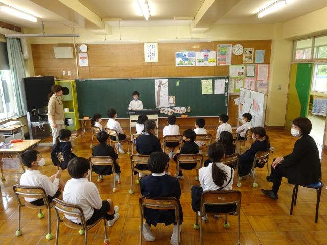 森の音や台詞の強弱、気持ちのこもった音読、間のとり方などとても素晴らしかったです。それに、きつつきやうさぎなどの絵カードをリアルに動かしながらの発表でした。しかも、自作の続きのお話やでんでこ太鼓の曲の演奏まで披露してくれました。