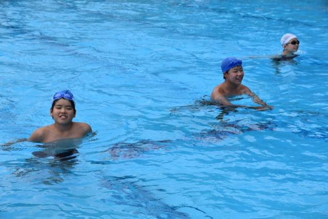 今日は、1,2年生の3校合同交流会でした。学校対抗で、水入れ競争や宝探しをしました。笠野小学校の児童は、どの競技でも一生懸命がんばっていました。もぐったり泳いだりする力が前よりも少しついてきたようです。