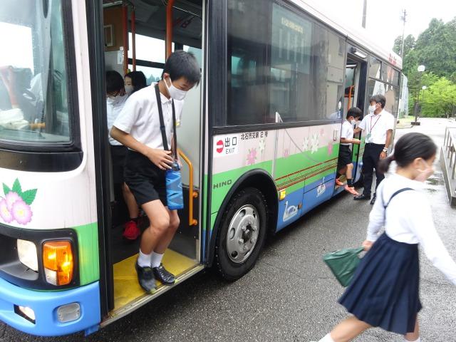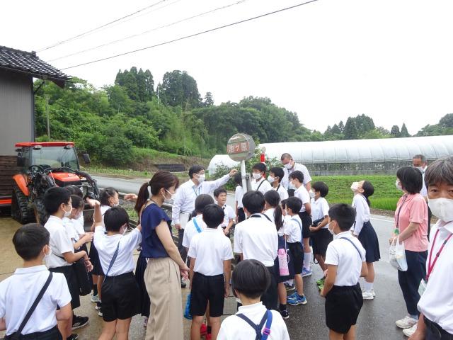 津幡町の町営バス利用促進事業として、本日、本校児童全員が町営バスの乗車体験をしました。毎日、町営バスで登校している児童もいますが、約半数の児童にとっては初めての体験でした。