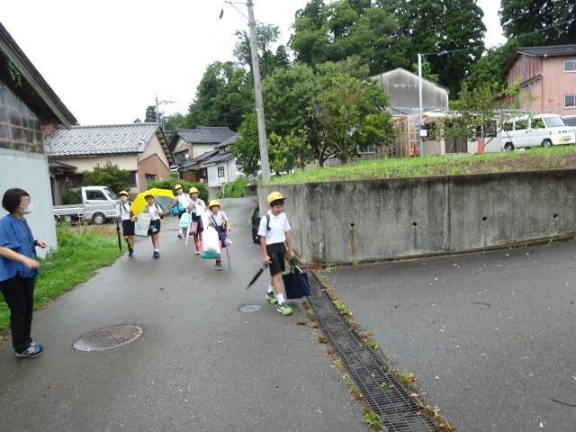 終わった宿題を提出したり、図書室で本を借りたりしました。また、通学路の本格的工事開始に向けて、該当児童はう回路を通っての登下校の練習もしました。