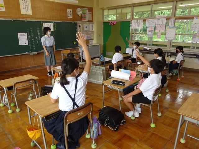 今日は登校日です。久しぶりに子どもたちの元気な声が校内に響きました。