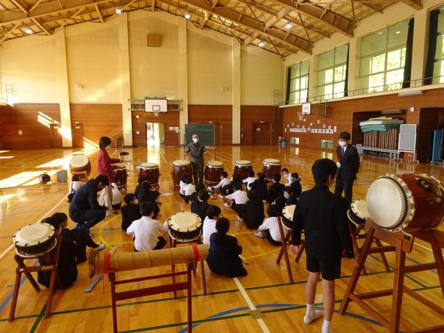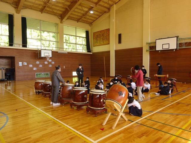今年度初の全校児童による「でんでこ太鼓」の練習もありました。太鼓の配置や全体の流れがわかりました。