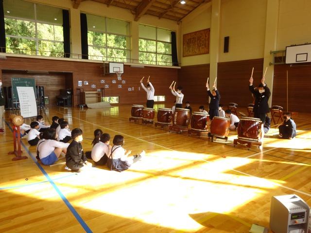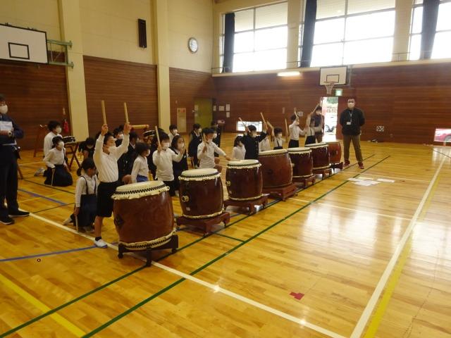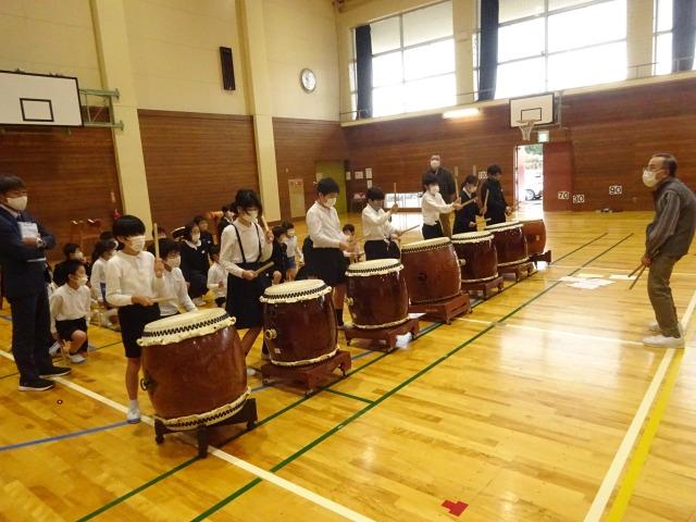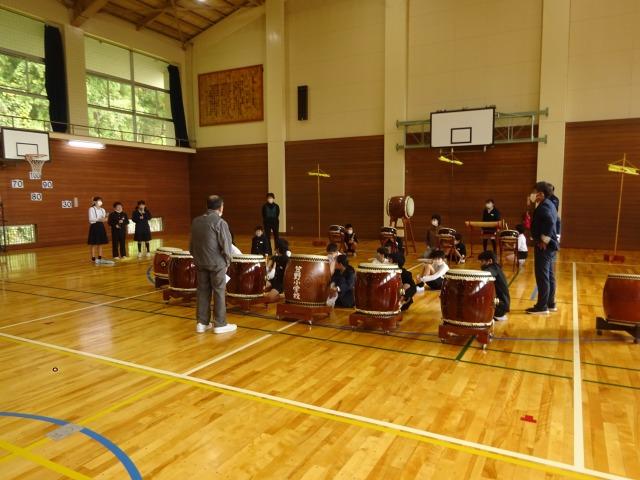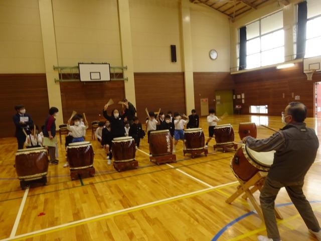 1時間目には、1,2,5,6年がでんでこ太鼓の練習をしました。1年生もがんばっていました。