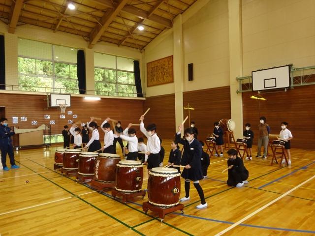 今日は全校でのでんでこ太鼓の練習がありました。1年生も少しずつ様になってきました。2年生は昨年経験しているだけあって上手でした。高学年にもなると力強さがあります。来月の発表会に向けて練習が続きます。