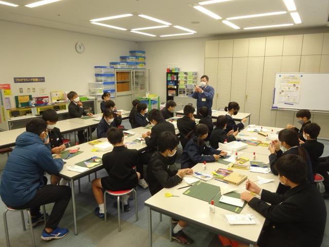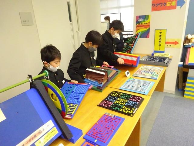 その後は館内での自由時間です。展示されているAIロボットに話しかけたり、いろいろな実験道具で遊んだりしました。科学館がシグナスに移ってから初めて訪れた児童がほとんどで、みんなとても楽しそうでした。帰校後も昼休みにスカイスクリューを飛ばして遊んでいました。前よりも科学に興味が涌いたかな。