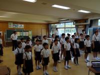 27人全員でスタートを切ることができたこと大変うれしく思います。2学期始業式では、校歌を歌い、校長から「2学期ももっと進化したJMSをみんなでがんばっていこう」や「目標をたてる時の秘訣、目標を達成するとどんなよいことがあるか」のお話がありました。そして、生徒指導から9月の生活目標「いつでもどこでもだれにでも元気にあいさつをしよう」のお話と高学年から具体的な取り組みのお話がありました。あいさつができたらシールを貼って、木を実らせていきます。いっぱいの木が実りますように。