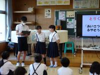 1~4年生が10月9日に町バスに乗って「のとじま水族館」に行きます。その準備のため、3・4年生が「のとじま水族館について」「遠足の日程」「持ちもの」「約束」について1・2年生にプレゼンをしました。ふりかえりに1・2年生は「イルカショーを見るのが楽しみになった」などと話していました。バス遠足のわくわく気分になりました。