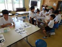 1時間目にかみしばいを見ました。「まんまるまんまたんたかたん」では、12年生の子供たちが主人公のまんまるまんまを手拍子で応援する場面などがあり、かみしばいの物語に参加しながら楽しみました。