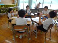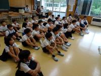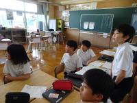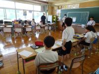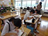 1年生が6年生の算数の授業参観に行きました。1年生は、6年生のおにいさん・おねえさんが自分たちで学習をすすめていることに「すごいな」と感心して見ていたようです。6年生は、よい刺激となりはりきっていたようです。1年生は教室に帰った後、6年生のすてきなところを見つけていました。