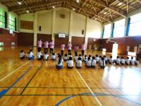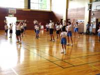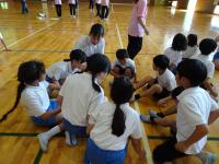 赤・白に分かれて応援練習が始まっています。団長と6年、5年を中心に、コールやダンスを考えました。アドバイスをし合うなど工夫して練習しています。大きな声が出ています。