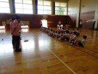 長休みに星稜大学で小学校の先生を目指している学生さんといっしょに遊びました。まずは、「猛獣狩りに行こうよ」という遊びで9人グループをつくりました。その後、平均台を使った「バランスウォーク」、全員で「ドッジビー」をしました。最後に手作りのメダルをもらいました。子供たちのニコニコ笑顔をたくさん見られました。