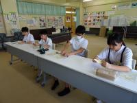 市谷営農組合の方にご協力いただいて、稲刈りを体験しました。5月に植えた苗は、たわわに稲穂を実らせていました。くわで稲を刈り、ばってんにしてひもでしばります。ささがけをする予定でいたが、残念ながら急な雨でできませんでした。お手伝いくださった方々、ありがとうございました。収穫したお米を食べることが楽しみです。