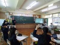 県央土木事務所の方が3名来校され、「土砂災害とは」や「土砂災害の種類」、「土砂災害が起きたらどうする」かなど教えていただきました。土砂災害の動画を見たり、問題を解いたりしながら学びました。