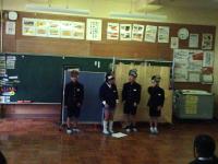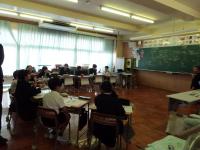 津幡中の生徒から「学校生活について」を聞きました。また、中学校の先生の「英語」の授業をうける体験もありました。英語の授業で、「自分の学校の紹介」を伝えました。