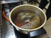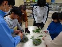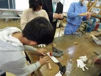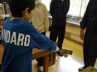 林業研究会・森林組合の方と「こども森のめぐみ推進事業」のひとつとして「あての芳香剤づくり」と「バードコールづくり」をしました。芳香剤づくりは、あての葉と木を小さく切りコトコト煮て、その煮汁をボールにしみ込ませます。バードコールは、木に穴を空けてボルトをねじ込みます。ボルトをひねると鳥のさえずりに似た音がでます。