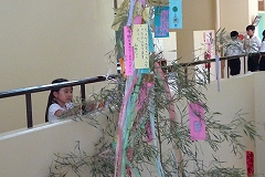 ↑もうすぐ七夕です.お天気はどうでしょうか.中央階段の七夕飾りは賑やかになってきました.
