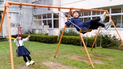 この日は,朝から時折雨が降る,すっきりしない天気。しかも,週末に学習発表会を控え,休み時間といえども忙しい児童も多く,「今日の外遊びは難しいな」と思っていましたが,長休みになると,あまり多くはないけれど,児童たち,しっかりと外遊びをしてくれました。運動場にも若干遊びに出る児童はいましたが,中庭にも来ました。(ちなみに,バスケットゴール後ろに,昨日張った防獣ネットが写っています。)ここのところ,紅葉がピークを迎えています。中庭から見える紅葉がとてもきれいでした。